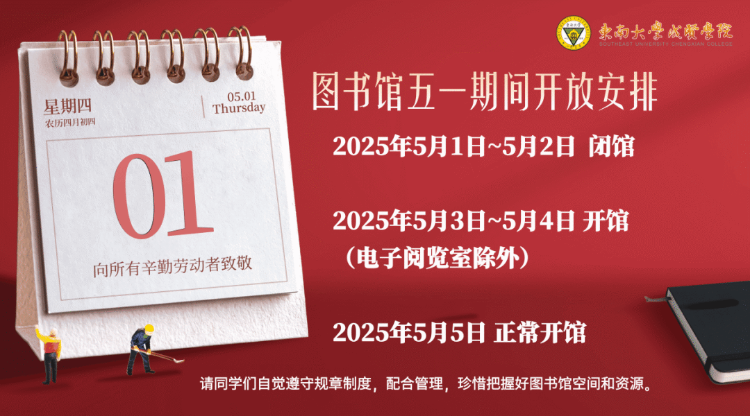 根据东成通〔2024〕40号《关于2025年部分节假日放假调休安排的通知》,图书馆五一期间开放安排如下: